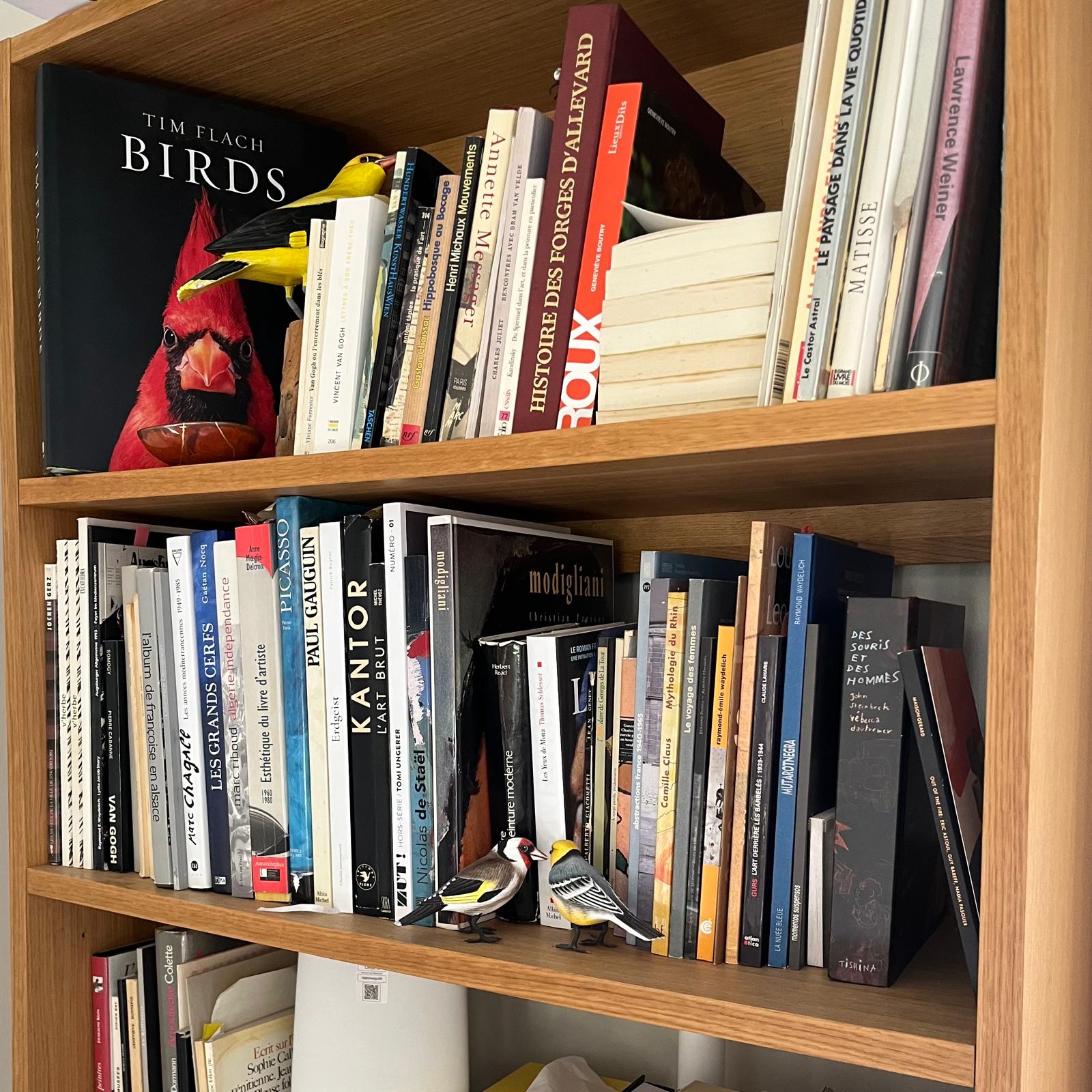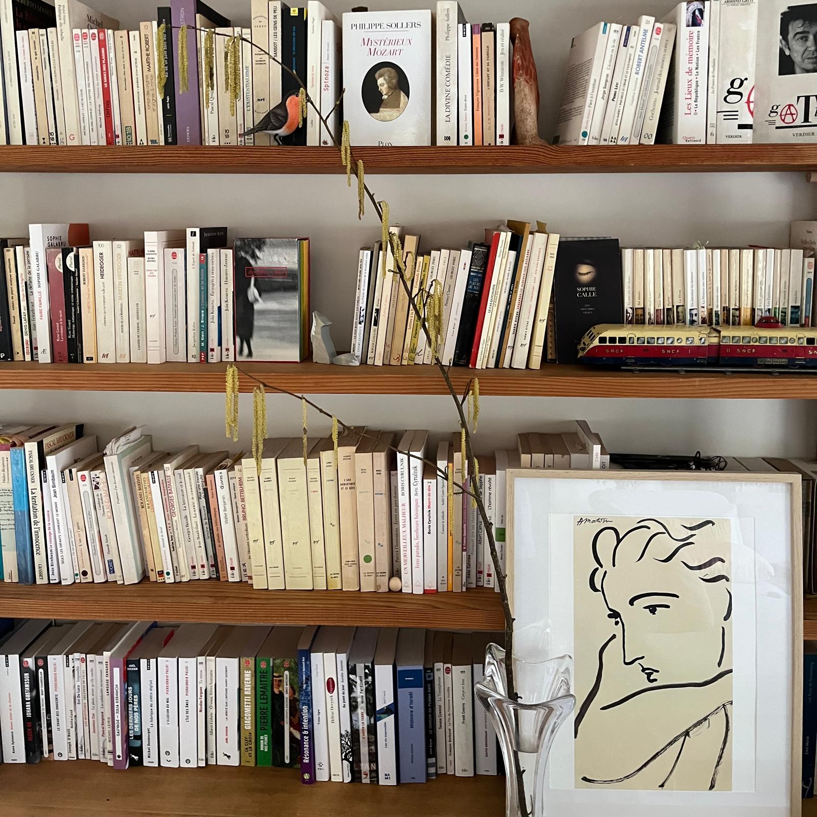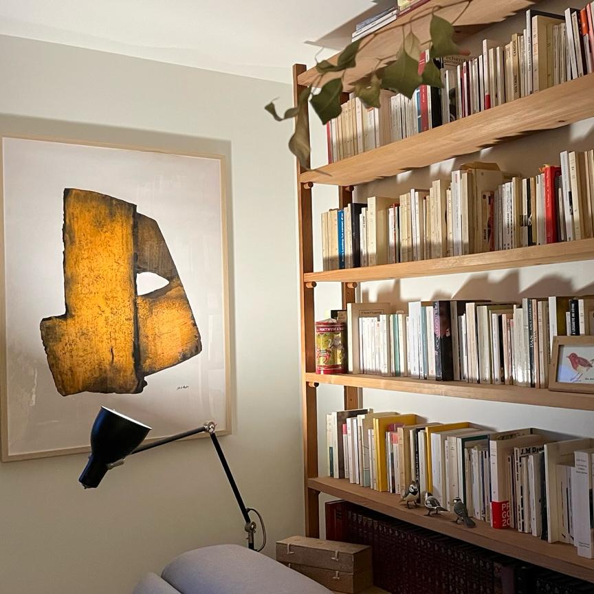 Livres et catalogues veillent. Trois bibliothèques. Des eaux-fortes sur les murs. Des céramiques posées là. Des appareils photos anciens. Un Polaroïd. Autour, le jardin respire. Selon la lumière, on écrit dedans ou dehors.